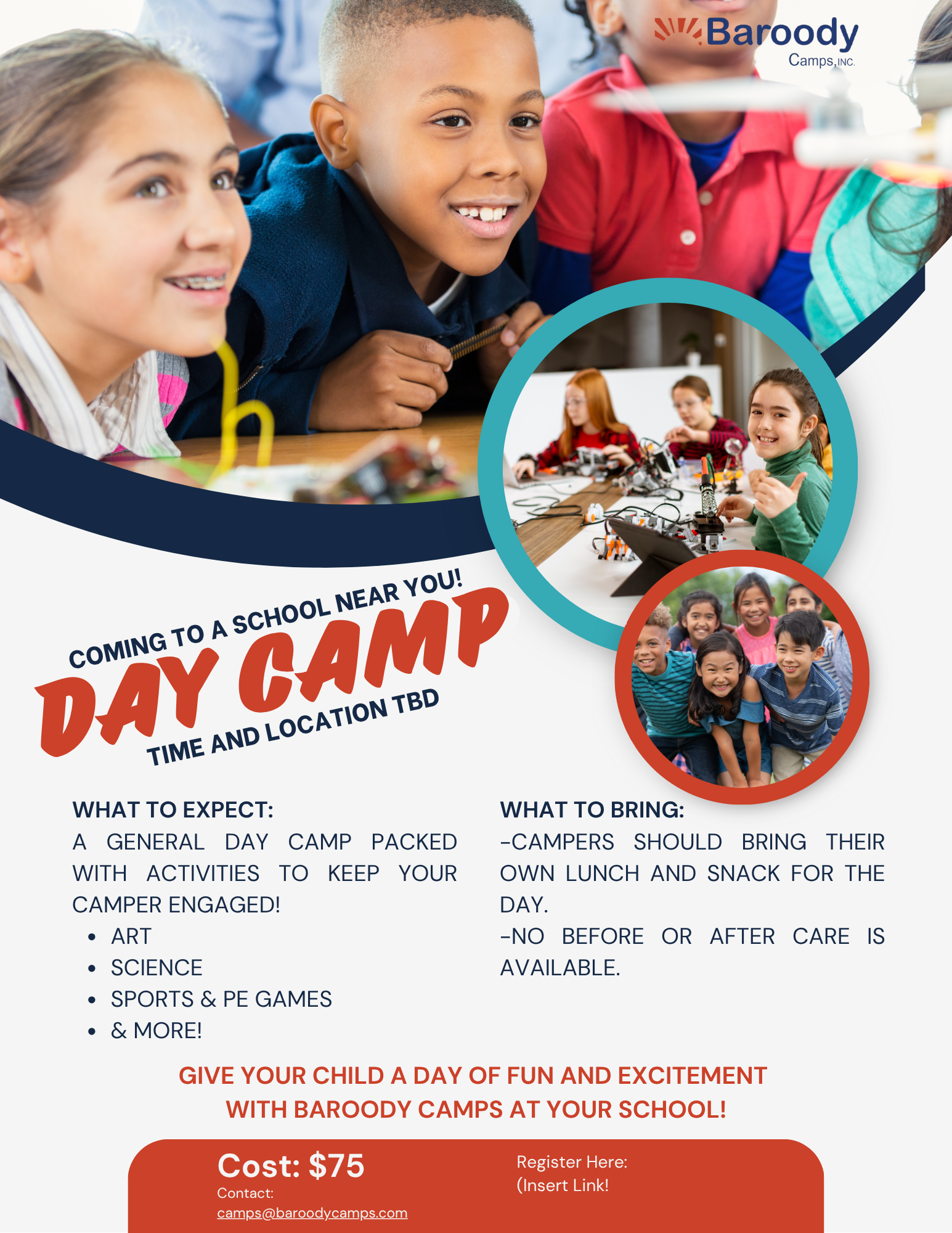 It’s time! 🎉 Registration for Baroody Camps’ enrichment at (School Name) is officially OPEN!